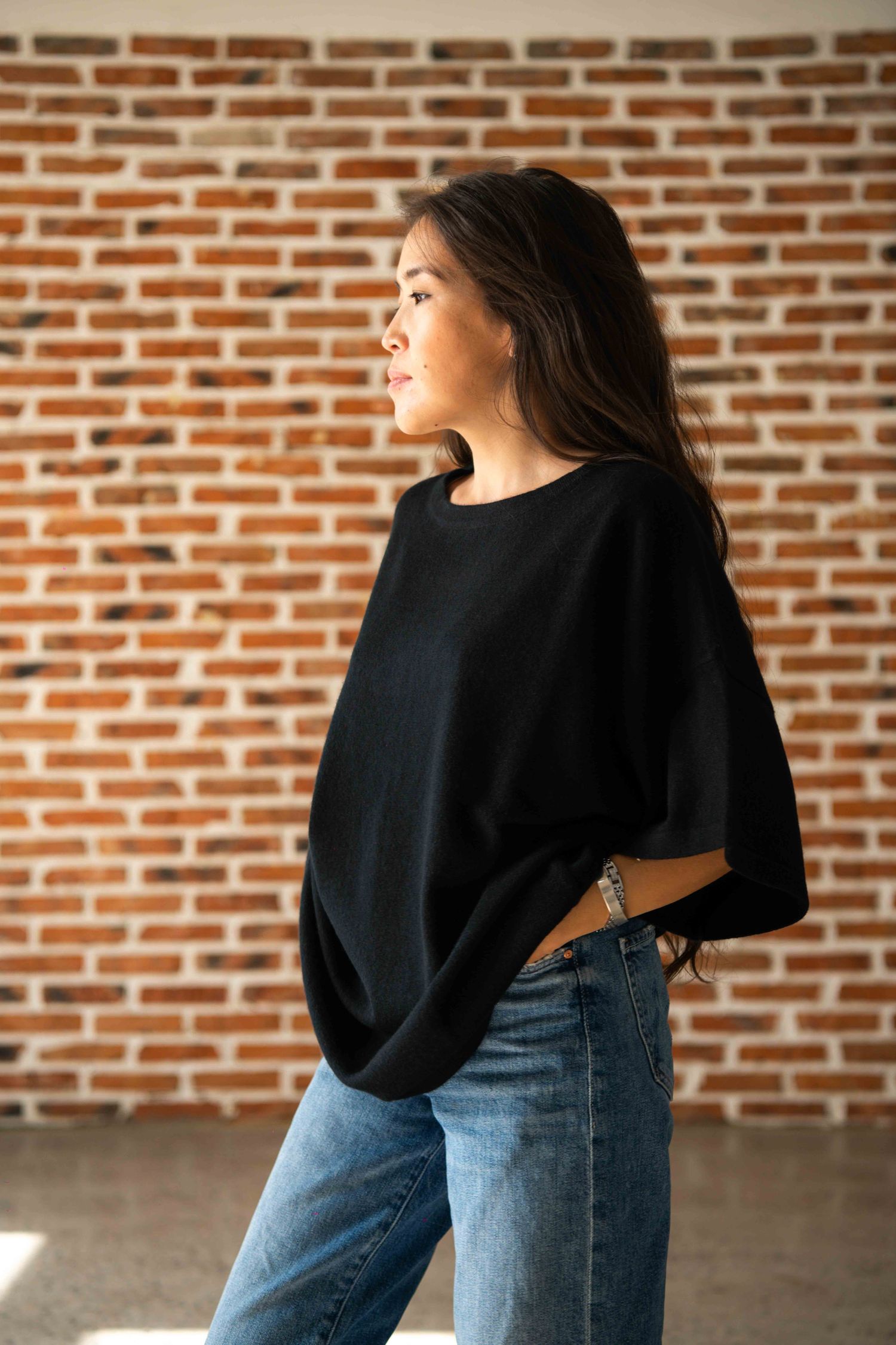 Классик загвар бүхий нэг размер бүхий сул подволкыг та ямар ч тохиолдолд өмсөж болох юм. Биед маш эвтэйхэн, дөрвөн улиралд өмсөж болохуйцаар дан утсаар нэхэв.